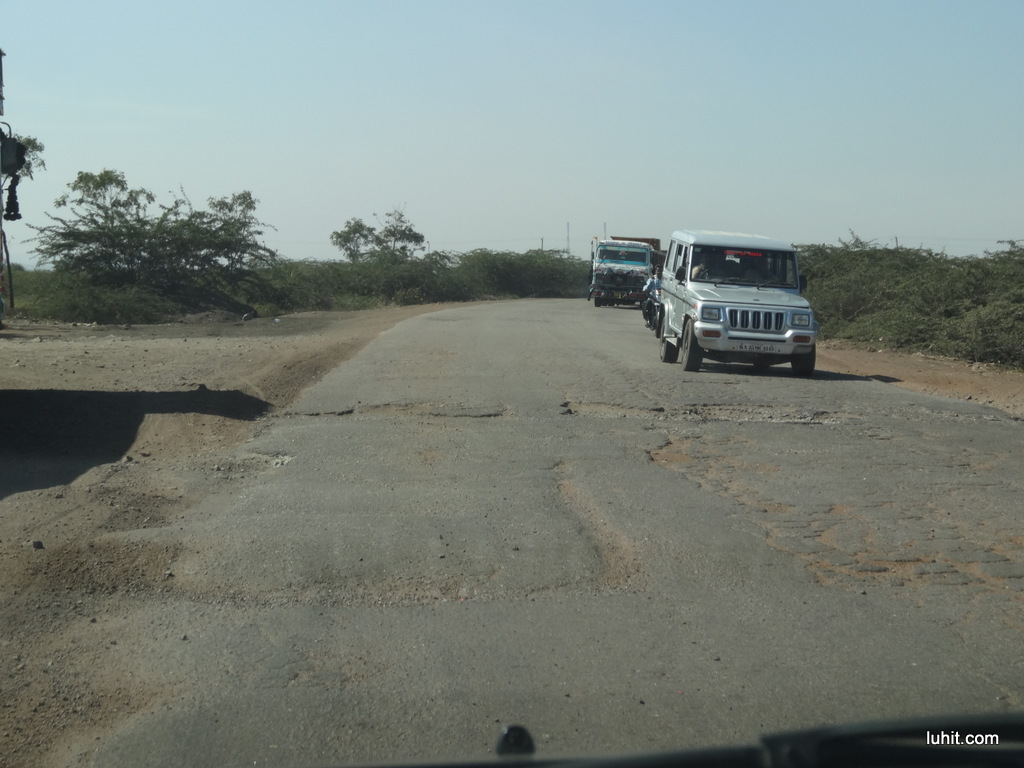 The road was in excellent state. Once in a while we came across slower vehicles but overtaking was easy. Throughout this leg we had a Baleno with large Hella lamps as company, at occasion the Baleno would be the pilot car and on others we would take the lead. Google Navigation guided us towards the Bellary bypass. So far roads were much better than our expectation, but the road beyond was altogether was different story.