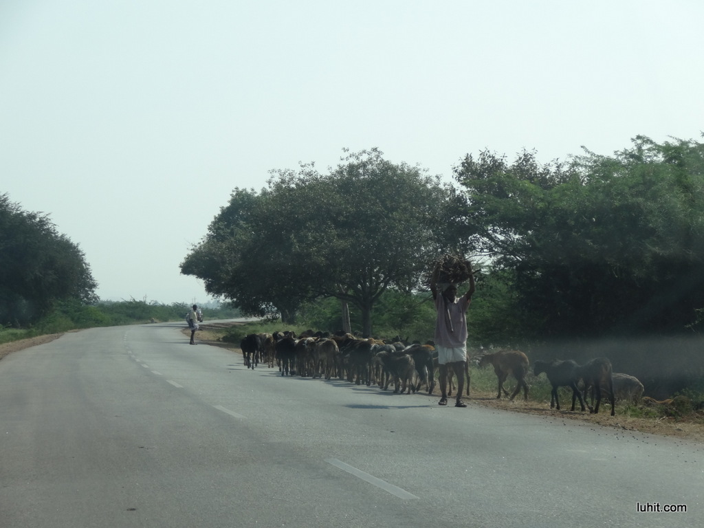 After half a KM or so there was a board saying Bellary to the right. Had Google Navigation not told me, I would have never seen this board under the flyover and would have gone past it towards Chitradurga. At this point we were onto a 2 lane state highway towards Bellary. Within minutes of crossing Hiriyur, traffic became sparse. We came across multiple hers of goad as we drove along.