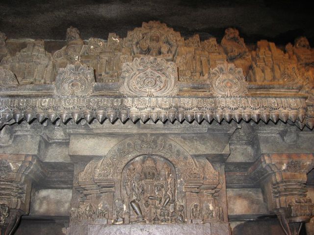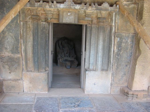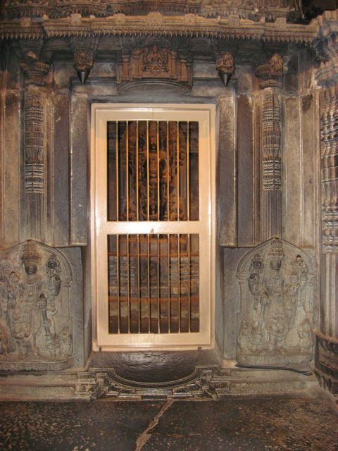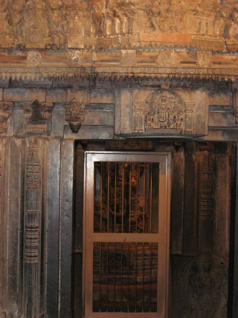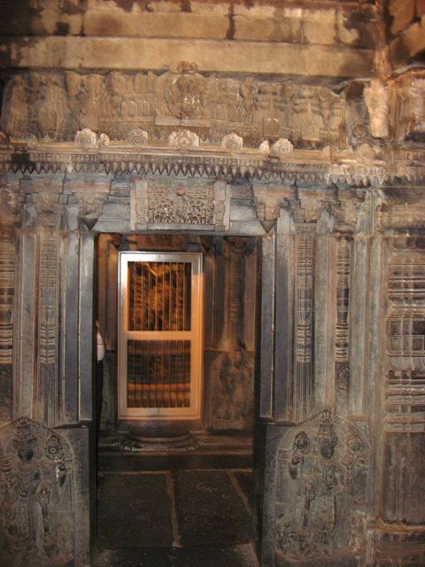 When you step into the main temple, the curving on the stone is all about you – on all the side , on the ceiling ….. Iron grills now guards the three priceless statues inside the three domes of the temple.