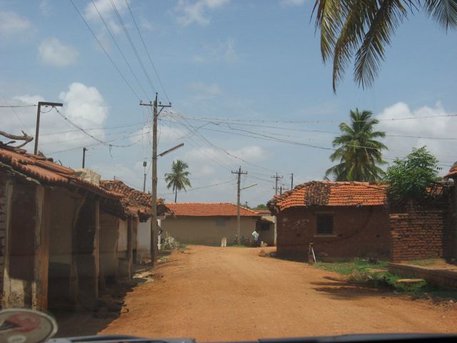 Once you we got into Hiriyur, Google Navigation asked  us to  move into the service lane just before a flyover. I was skeptical as I saw no road sign anywhere. Nonetheless we turned into the service lane which was narrow and there was a big goat market by it. Literally I had to drive through the herds of goat.