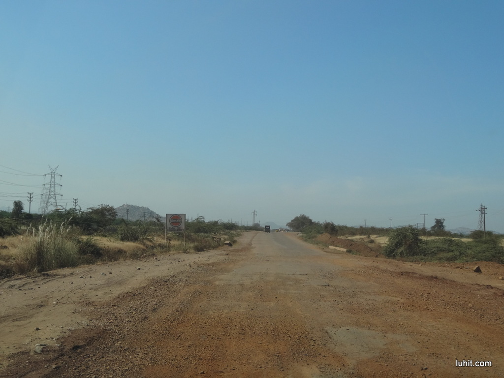 The road was in excellent state. Once in a while we came across slower vehicles but overtaking was easy. Throughout this leg we had a Baleno with large Hella lamps as company, at occasion the Baleno would be the pilot car and on others we  would take the lead. Google Navigation guided us towards the Bellary bypass. So far roads were much better than our expectation, but the road beyond was altogether was different story.