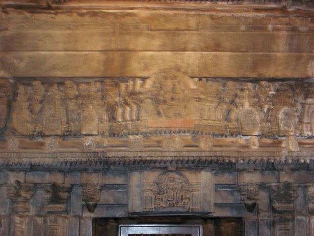 When you step into the main temple, the curving on the stone is all about you – on all the side , on the ceiling ….. Iron grills now guards the three priceless statues inside the three domes of the temple.